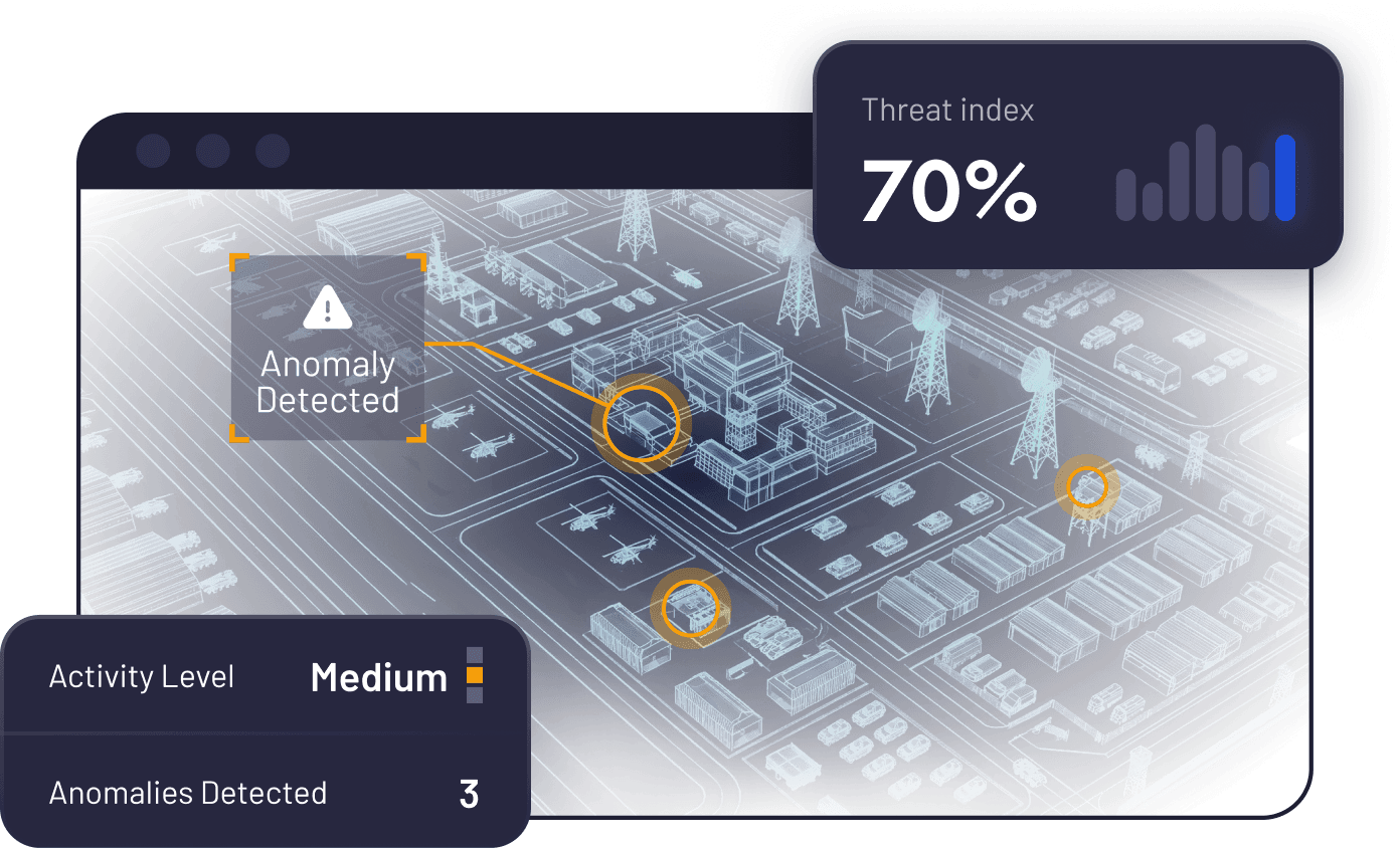 Advanced satellite intelligence analysis for national security, strategic monitoring, and threat detection using Al-powered geospatial analytics.
